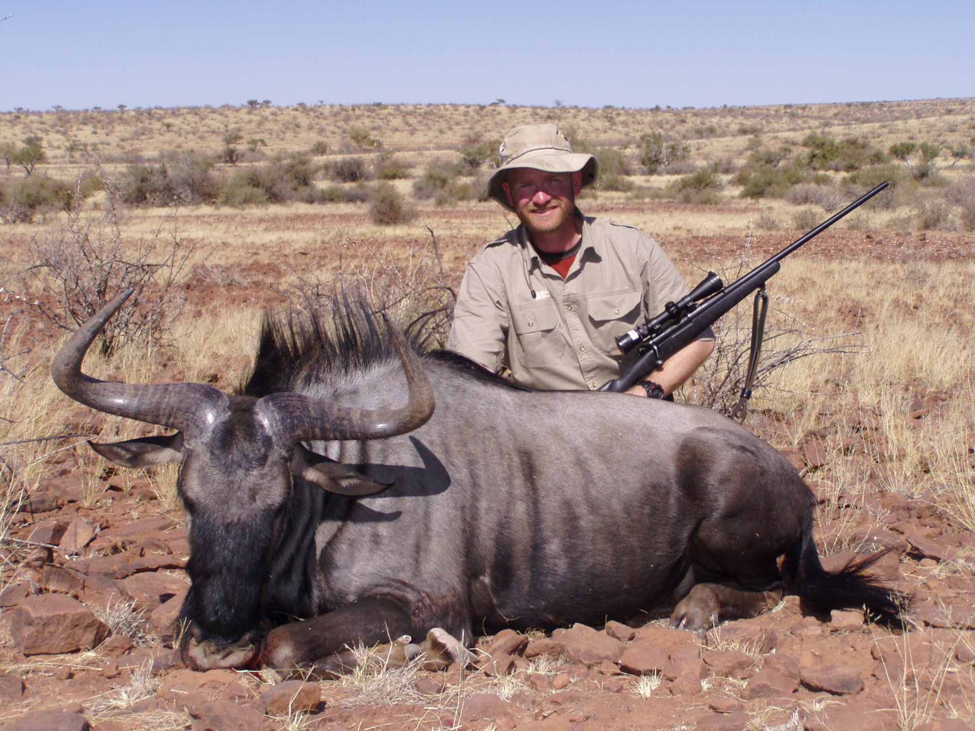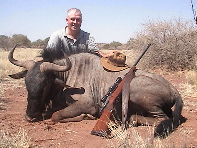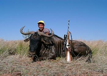 Wildebeest are gregarious animals, concentrating in herds of up to a few thousand animals, if conditions are propitious. There are no stable social groupings in the herd, where they try to retain the cows and their calves. Fights amongst adult bulls consist mainly in a lot of pushing, each contender on to his knees, Not causing any bodily harm at all. Young wildebeest are evicted from the breeding herds at the age of 12 months, forming bachelor groups of up to 40 individuals. The female does not leave the herd to give birth. Although it has a fragile appearance at birth, the calf is able to follow it's mother within about 2 hours. Wildebeest have two annual cyclic migrations coinciding with the rainy summer season and the dry season in winter. They follow fixed migration patterns, with the same wet and dry season concentration areas used every year. Adult bulls can weigh up to 250 Kg and cows up to 215 Kg, and have a life span of about 20 years.